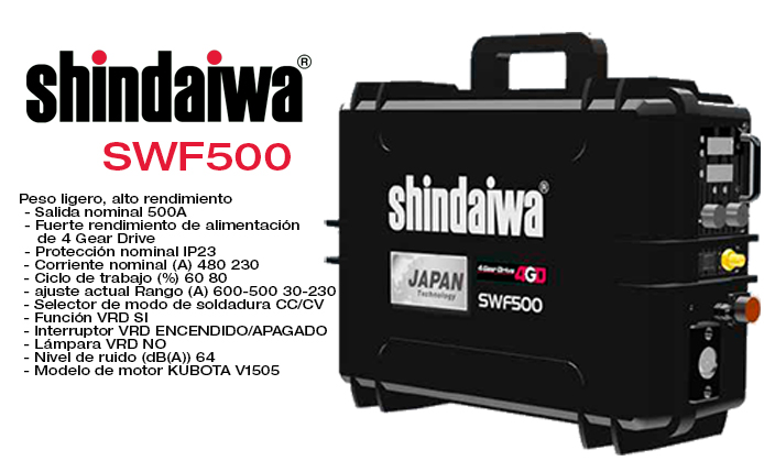Shindaiwa soldadoras es una marca 100% japonesa líder a nivel global principalmente enfocada en el alto rendimiento y alta eficiencia de sus productos. Cuenta con más de 50 años de experiencia en la fabricación de soldadoras y generadores.